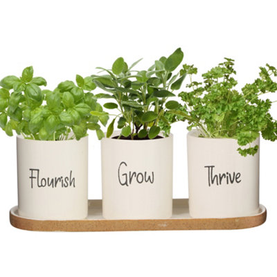 Herb Pots With Tray Set Indoor Herb Planter Farmhouse Inspired Decorative Herb Garden Planter With Drainage Holes For Healthy Plants Ideal For Indoor Windowsill Amazon De Garden